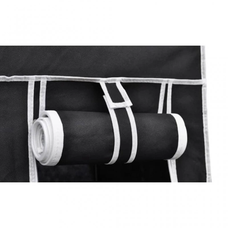 I tuoi vestiti saranno sempre tenuti molto bene. Perché è pieghevole, è salvaspazio e facile da montare. La porta arrotolata è fissata con dispositivi di fissaggio a strappo, che proteggono i tuoi vestiti da polvere e sporcizia. Le cerniere sono facili da aprire e chiudere. Il rivestimento dell’armadio è realizzato in tessuto felpato, mentre il telaio è in tubi di acciaio.