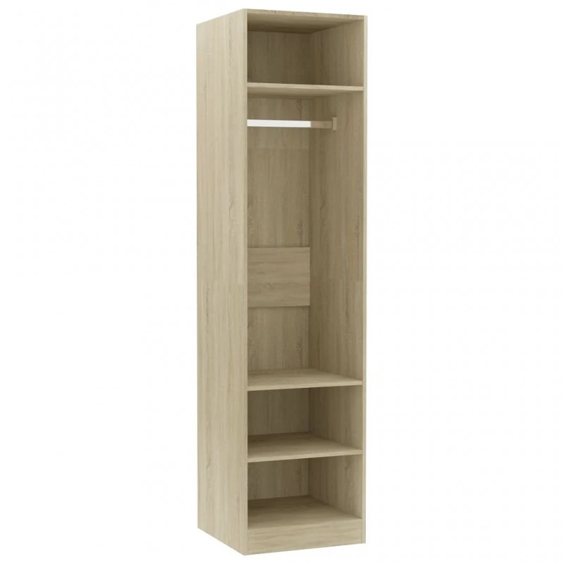 Questo armadio è realizzato in truciolato, materiale che garantisce robustezza, solidità e lunga durata. Include 3 piccoli scomparti e 1 ampio scomparto con un’asta per appendere i vestiti, ed offre ampio spazio sia per gli abiti più lunghi che per altri vestiti o accessori piegati, come maglioni, jeans, cappelli, borse, etc.