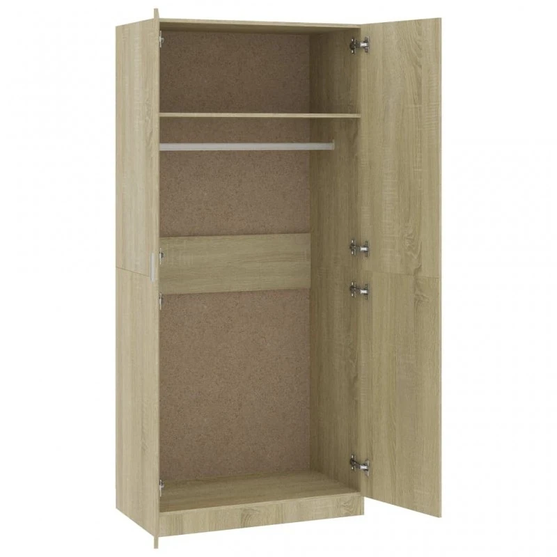 Questo armadio è realizzato in truciolato di qualità, un materiale che garantisce robustezza, solidità e lunga durata. Include un ampio scomparto con un’asta per appendere i vestiti, e offre ampio spazio sia per gli abiti più lunghi che per altri vestiti o accessori piegati, come maglioni, jeans, cappelli, borse, etc.