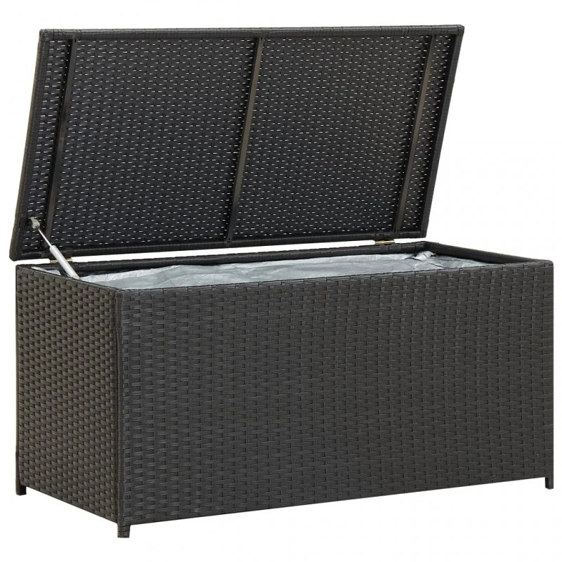 Caratterizzata da un vano spazioso, la cassapanca è abbastanza grande per contenere oggetti da giardino come: cuscini per mobili, coperte extra, giochi da piscina e articoli da giardinaggio. Questo baule è costruito con telaio in acciaio verniciato a polvere e polyrattan intrecciato a mano, che è robusto, antiruggine e resistente agli agenti atmosferici garantendo anni di utilizzo sicuro. La fodera, con chiusura a cerniera, proteggerà il contenuto da polvere e umidità. Grazie ai piedini rialzati, questa cassapanca assicura una buona circolazione dell’aria sotto e mantiene gli oggetti asciutti e puliti. Il baule si pulisce facilmente con un panno umido.