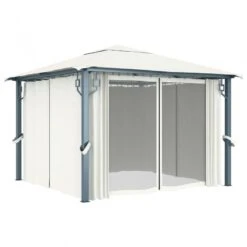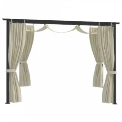 Gazebo Con Tende E Luci LED 400×300 Cm Antracite In Alluminio
