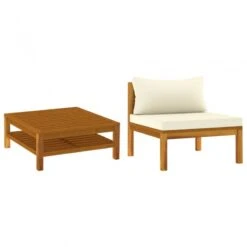 Set Divani Da Giardino 2pz Cuscini Bianco Crema Massello Acacia
