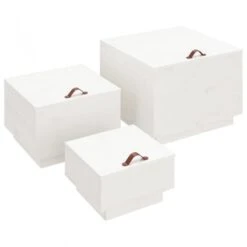 Contenitori Con Coperchi 3 Pz Bianchi In Legno Massello Di Pino