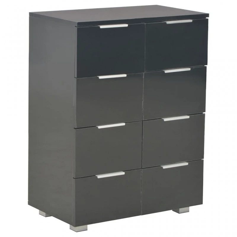 Questa credenza è realizzata in truciolato con una finitura lucida, materiale che conferisce al mobile un aspetto raffinato e lo rende estremamente robusto e resistente. Dotata di 8 cassetti, la credenza offre ampio ampio spazio per riporre vari oggetti, rendendo la stanza ordinata e pulita. Questo armadietto portaoggetti è facile da pulire.