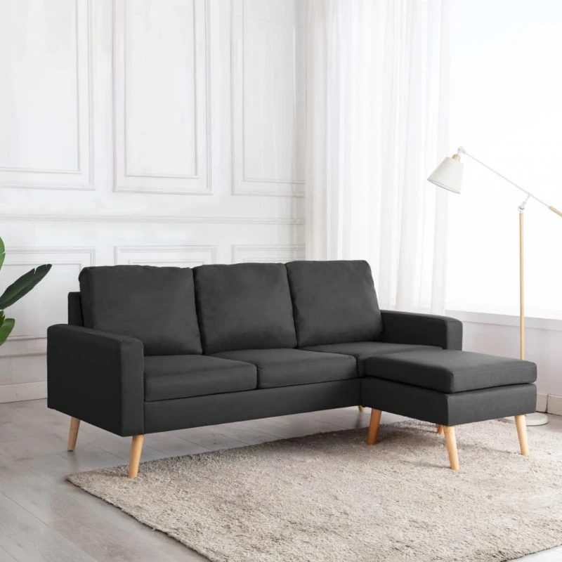 Questo divano è rivestito in tessuto morbido al tatto e dispone di cuscini imbottiti, che offrono uno spazio confortevole per rilassarsi. Il telaio in legno fornisce supporto e stabilità all’intera costruzione. Potete posizionare il poggiapiedi ovunque, per il vostro comfort e relax.