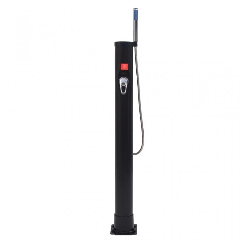 La doccia solare è semplice da usare. È possibile regolare facilmente la temperatura dell’acqua, semplicemente ruotando il miscelatore. La doccia solare è dotata di un soffione estraibile e di un tubo flessibile. Grazie alla base in acciaio di alta qualità e agli ancoraggi a terra inclusi, la doccia da esterno può essere fissata a terra.