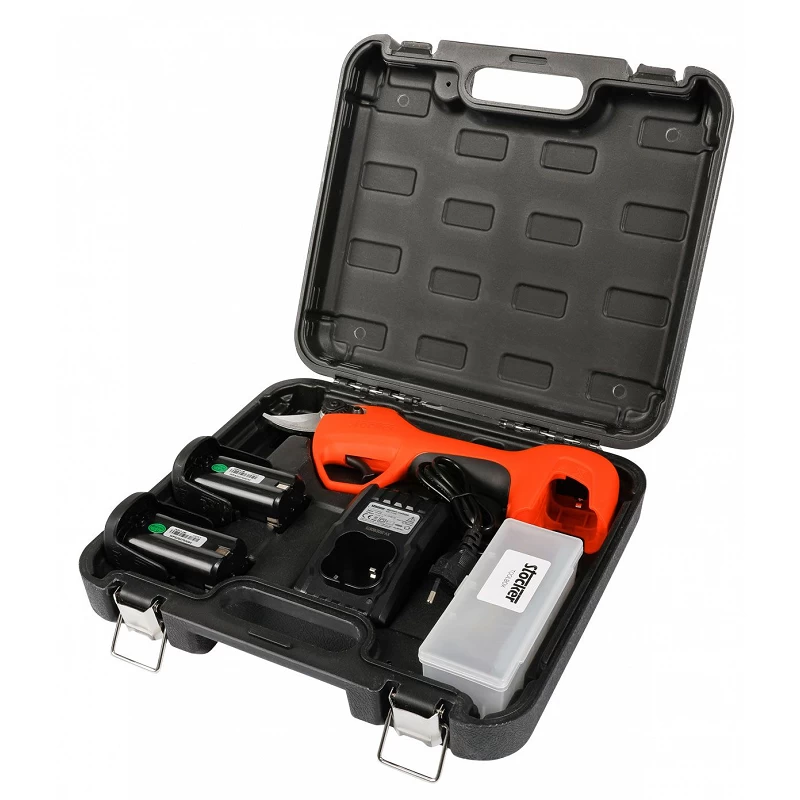 Grazie alle due batterie Li-Ion ricaricabili da 2,5 Ah/14,4 V in dotazione, ha un’autonomia di ben 6 ore, che corrispondono circa a 4.000 tagli*. L’operatore può tagliare rami fino a 30 mm in modo agevole, riducendo lo sforzo e lo stress sulla mano e polso, anche grazie al design ergonomico che garantisce una comoda impugnatura e al peso leggero di soli 900 g. Prolungare la vita di questa forbice mantenendola al meglio è un’operazione alla portata di tutti, grazie alla facile e rapida procedura di manutenzione, da effettuare con il kit incluso.