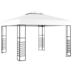 Il telaio è robusto e stabile grazie alla sua struttura interamente in acciaio ed il tettuccio del gazebo è realizzato al 100% in poliestere con un rivestimento in poliammide per proteggervi dai dannosi raggi UV ed anche dalla pioggia. L’elegante design a doppio sfiato consente inoltre un migliore flusso d’aria ed un maggiore comfort. L’installazione è facile.