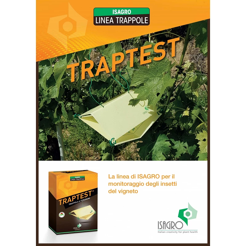 ISATRAP TRAPTEST è lo strumento più diffuso e consigliato per eseguire il monitoraggio dei voli dei Lepidotteri nei frutteti e nei vigneti, accessorio essenziale per la lotta guidata, consentendo all’agricoltore di conoscere quanto il reale livello di infestazione supera determinate soglie.