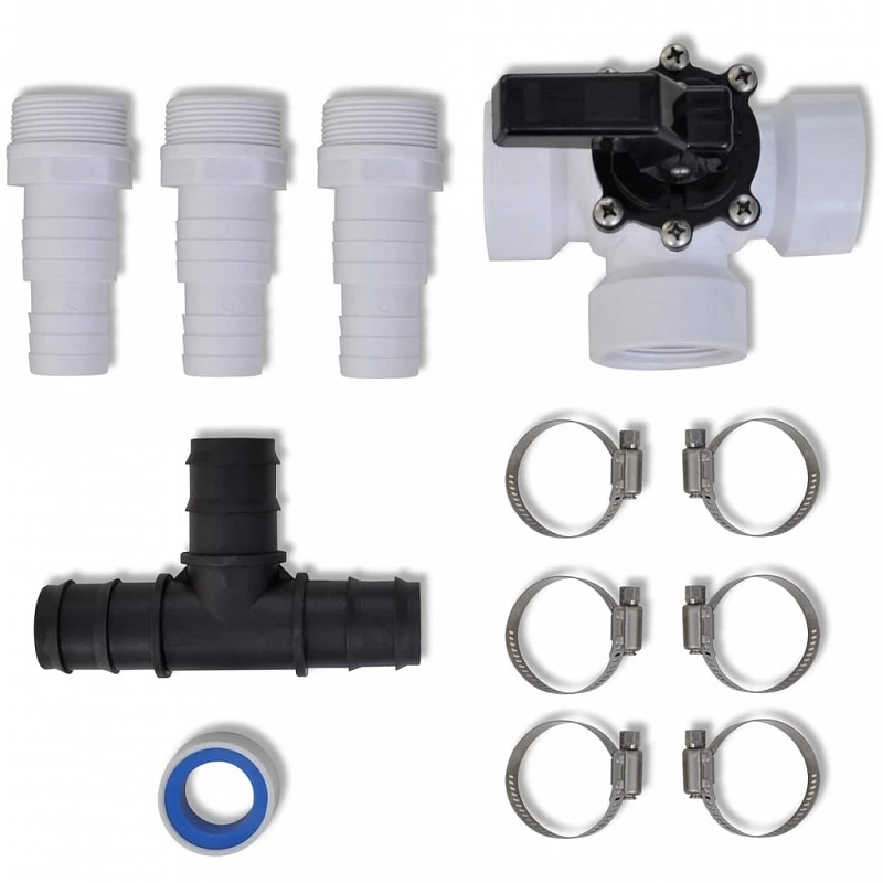 La consegna include 1 valvola a 3 vie (commutabile), 1 connettore a T, 6 morsetti in acciaio e 3 tubi raccordo. Gli adattatori tubi possono essere collegati con tubi 32 mm o 38 mm.