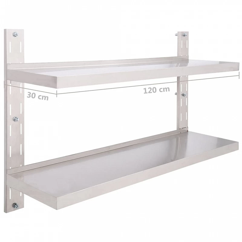La nostra mensola da parete a 2 livelli in acciaio inossidabile non risulta esclusivamente elegante ma è anche particolarmente funzionale, diventando una scelta eccellente per coloro che necessitano di spazio ausiliario in cucina. Può essere utilizzata come stazione ideale per conservare vassoi, piatti e altri utensili da cucina.