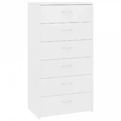 Credenza Con 6 Cassetti Bianca 50x34x96 Cm In Legno Multistrato