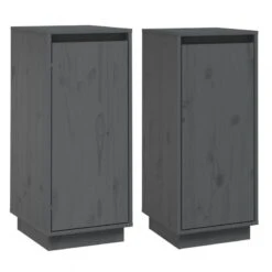 Credenze 2 Pz Grigie 31,5x34x75 Cm In Legno Massello Di Pino