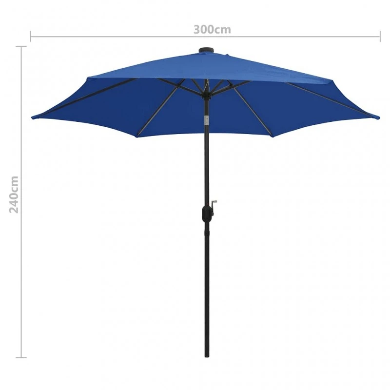 Realizzato in poliestere resistente ai raggi UV e anti-sbiadimento, il telo dell’ombrellone offre una protezione ottimale contro il sole ed è facile da pulire. Il solido palo in alluminio, insieme alle 6 stecche resistenti, rende l’ombrellone molto robusto e resistente. Questo prodotto può essere facilmente aperto e richiuso grazie al meccanismo a manovella. Le luci a LED integrate creano un’atmosfera accogliente e romantica di notte. L’assemblaggio è semplice.