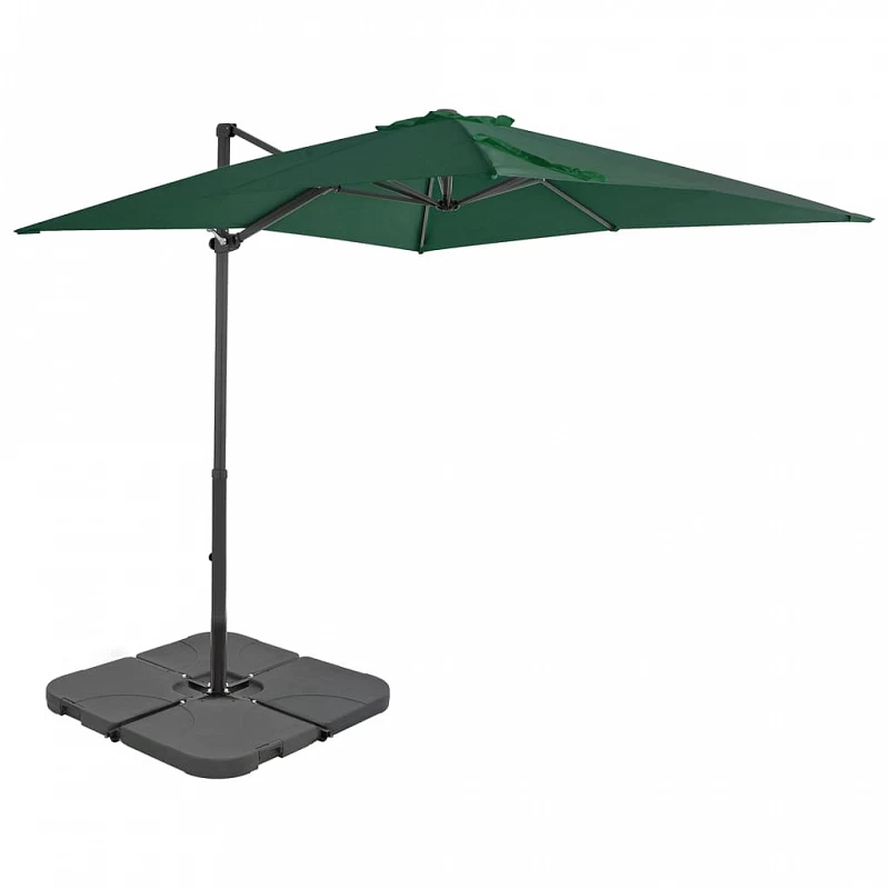Questo parasole è caratterizzato da un robusto telaio in alluminio, una grande copertura resistente ai raggi UV e una base portatile aggiuntiva ed è perfetto per proteggervi dai raggi del sole. L’ombrellone da giardino può essere aperto e richiuso facilmente utilizzando il pomello sul palo. Il palo e le 8 robuste stecche in alluminio rendono questo ombrellone molto resistente. Il disegno esclusivo di questo parasole fa sì che sia possibile inclinarlo e ruotarlo di 360 gradi per bloccare il sole in ogni circostanza. Inoltre la grande base rimovibile in acciaio a croce aggiunge stabilità senza occupare troppo spazio. La base aggiuntiva dell’ombrellone è composta da quattro sezioni separate e può essere riempita con 60 litri di acqua o 80 kg di sabbia ed è ideale per stabilizzare gli ombrelloni con base a disegno incrociato. Una volta svuotato il materiale di riempimento la base diventa leggera e facile da trasportare.