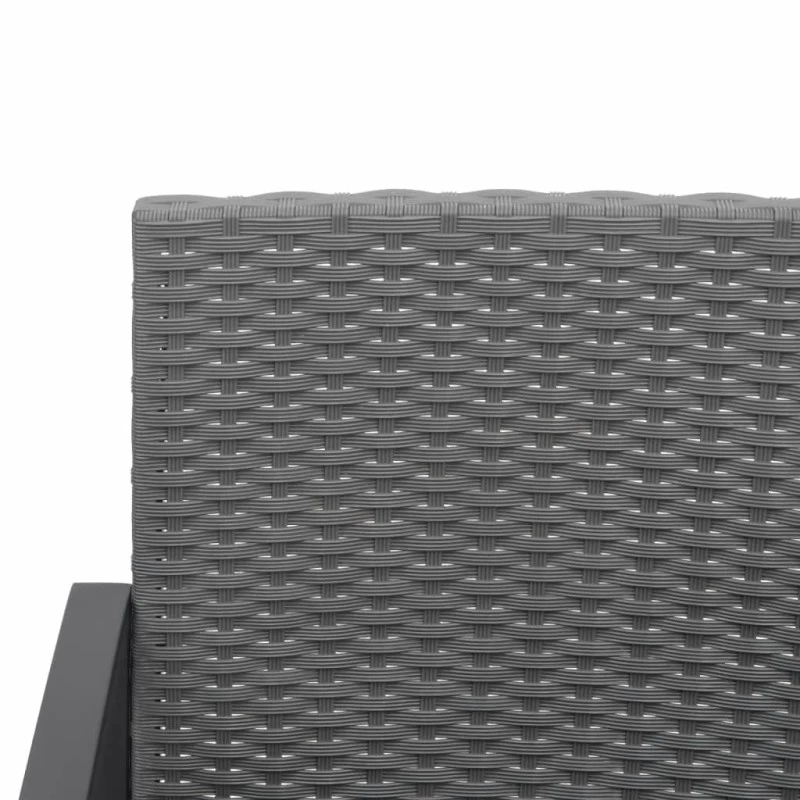 - Materiale: PP (polipropilene) con effetto rattan, acciaio verniciato a polvere
