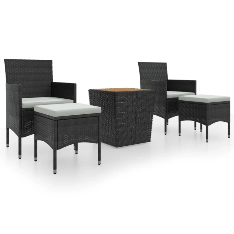 Caratterizzati da un telaio in acciaio verniciato a polvere ricoperto di rattan PE resistente agli agenti atmosferici con protezione UV, il tavolo e le sedie sono resistenti e stabili. Progettate con schienale e bracciolo curvi, le sedie offrono grande comfort. I cuscini inclusi garantiscono maggiore comfort e la fodera con cerniera è rimovibile per un facile lavaggio. Il piano del tavolo è realizzato in legno massello di acacia che ha una funzione di sostegno, è facile da pulire e manutenere. I due poggiapiedi offrono ulteriori posti a sedere. Inoltre, la struttura leggera rende ogni pezzo facile da spostare, riorganizzare e trasportare.