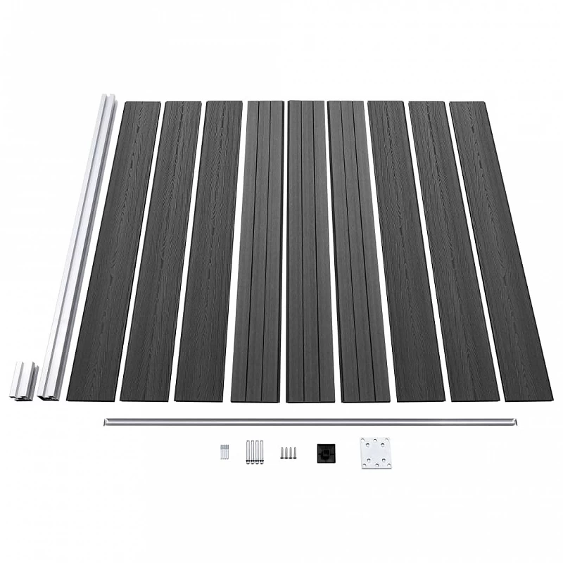 Realizzata in WPC (composito legno-plastica), questa recinzione da giardino è durevole e resistente alla putrefazione o alla ruggine. La barriera da giardino presenta una stampa con venature del legno su un lato e una stampa regolare sull’altro, dandovi l’opportunità di scegliere il design che preferite. Grazie alla sezione superiore in alluminio, le assi di recinzione possono essere fissate saldamente l’una all’altra, aumentando così la loro rigidità e la resistenza agli urti.
