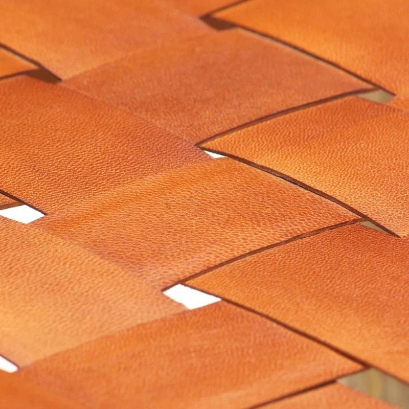 - Materiale: Vera pelle con finitura marrone tanno chiaro, legno massello di mango con finitura naturale