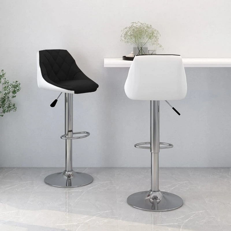 Queste sedie da bar sono rivestite in similpelle morbida al tatto, pertanto sono molto confortevoli. Il telaio nero in acciaio cromato offre un’elevata robustezza, mentre il poggiapiedi integrato aggiunge ulteriore comodità. Grazie al meccanismo di sollevamento a gas, questi sgabelli da bar possono anche essere regolati in altezza e sono un complemento perfetto per qualsiasi locale o sala da pranzo funzionale. Inoltre ruotano a 360 gradi fornendo la massima flessibilità.