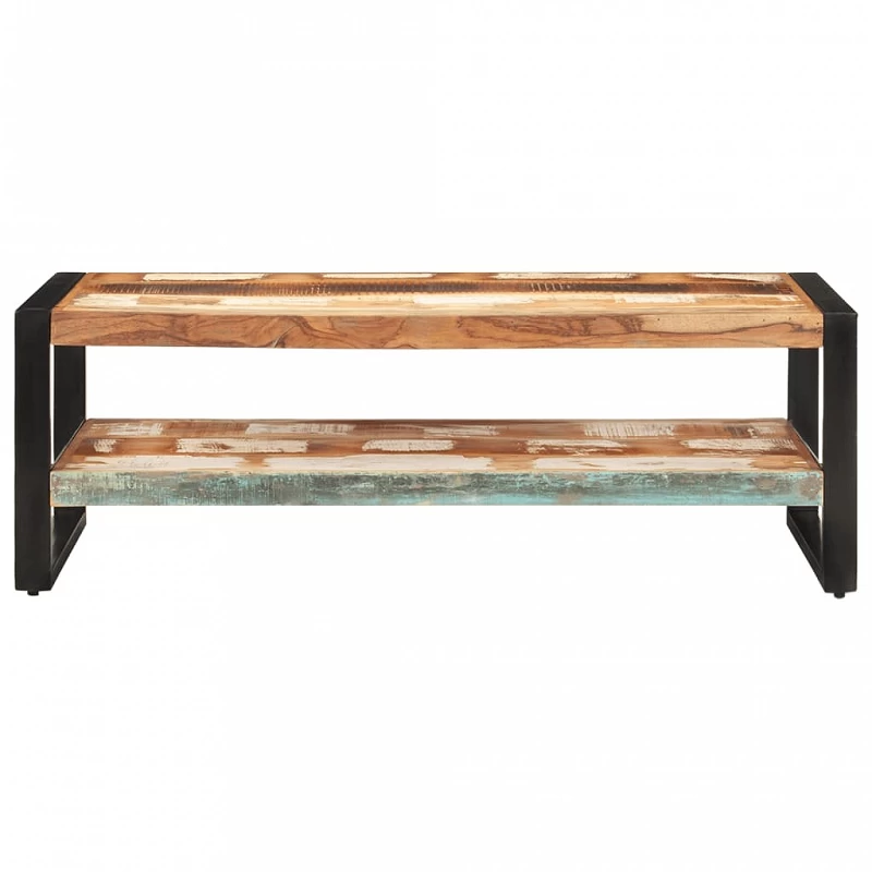 Questo tavolino è realizzato in legno massello di recupero che proviene da travetti, pavimenti e travi di sostegno di vecchi edifici demoliti, pertanto si tratta di una scelta ecologica per la produzione di mobili. Il materiale di recupero è un mix di altri legni, tra cui il pino, il teak, il faggio, il mango, ecc., il che significa che conserva le caratteristiche di questi diversi tipi di legno. Il telaio in ferro verniciato a polvere aggiunge ulteriore stabilità. Questo pratico tavolo d’accento ha 2 livelli, perciò offre abbastanza spazio per posizionare dispositivi multimediali, libri, riviste o piccoli oggetti che desiderate tenere a portata di mano. Potrete anche posizionarvi bevande, vasi, centrotavola di frutta e altri ornamenti.