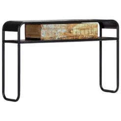 Questa consolle, dallo stile retrò, è realizzata in legno massello di recupero proveniente da travetti, pavimenti e travi di sostegno di vecchi edifici ed è costituita da diversi tipi di legno, come il pino, il teak, il faggio, la quercia, il cedro, il mango, l’acacia, etc. Il legno di recupero conserva le caratteristiche dei legni originali di cui è composto ed è già invecchiato, stagionato ed essiccato, per cui non si restringe o si deforma. Questa consolle, splendidamente disegnata, è estremamente robusta, resistente e dallo stile affascinante. La perfetta artigianalità e le delicate venature del legno rendono ogni mobile unico e leggermente diverso da tutti gli altri. Il tavolo da ingresso è dotato di 1 cassetto e 2 ripiani che offrono ampio spazio dove riporre dispositivi multimediali, libri e altri oggetti. Il mobile è già assemblato, non è richiesta alcuna operazione di assemblaggio.